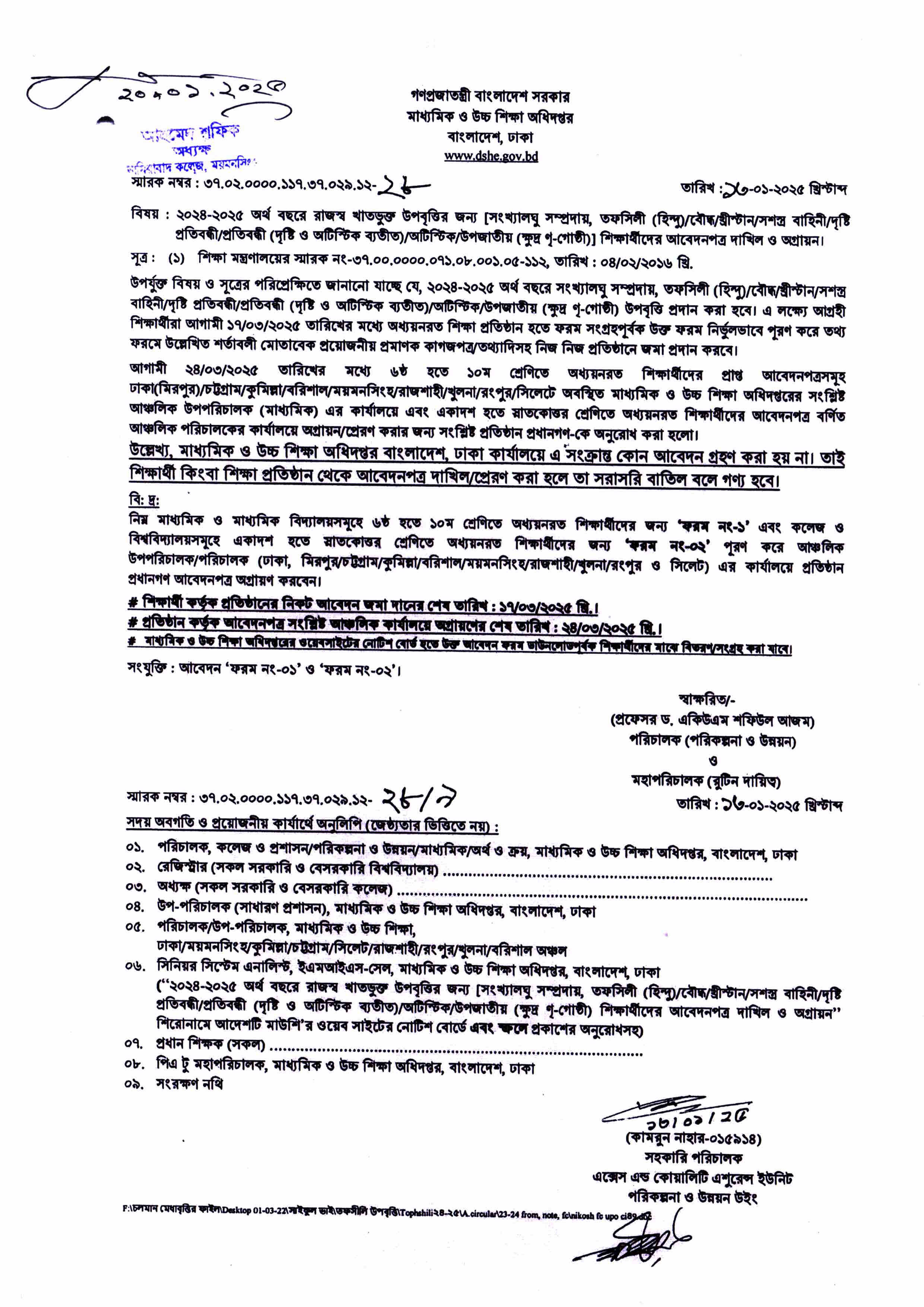 ২০২৫-২৬ শিক্ষাবর্ষে একাদশ শ্রেণিতে সর্বশেষ ৪র্থ পর্যায়ে ভর্তির বিজ্ঞপ্তি
