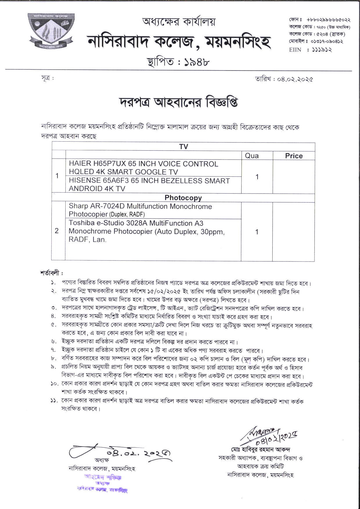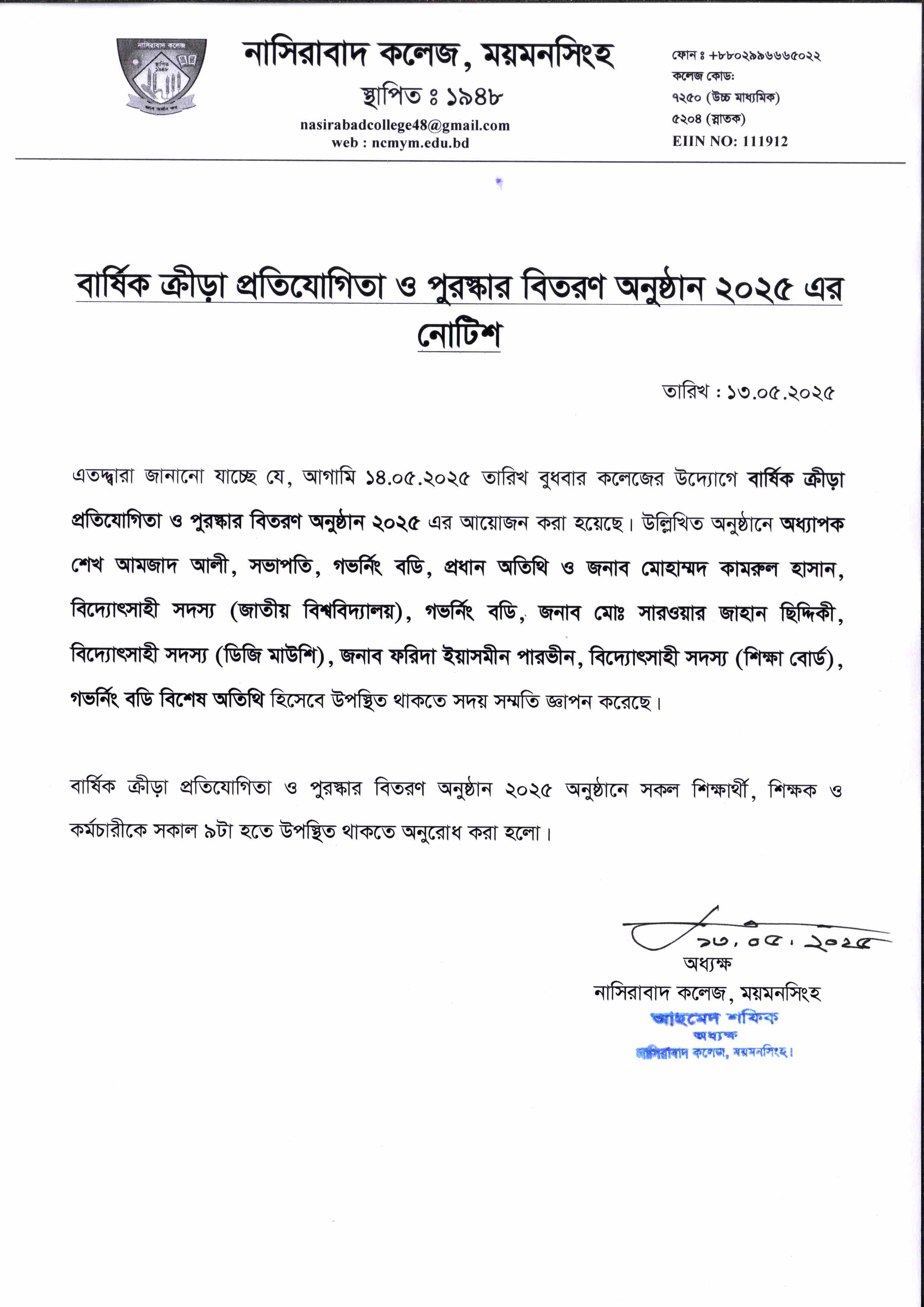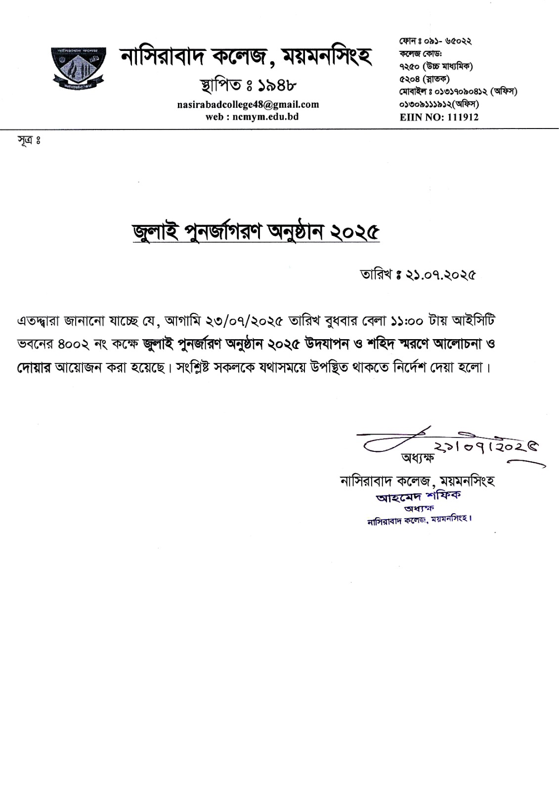 নাসিরাবাদ কলেজের অফিসিয়াল পেইজবুক পেইজ ‘নাসিরাবাদ কলেজ, ময়মনসিংহ’ পেইজটি হ্যাক প্রসঙ্গে।