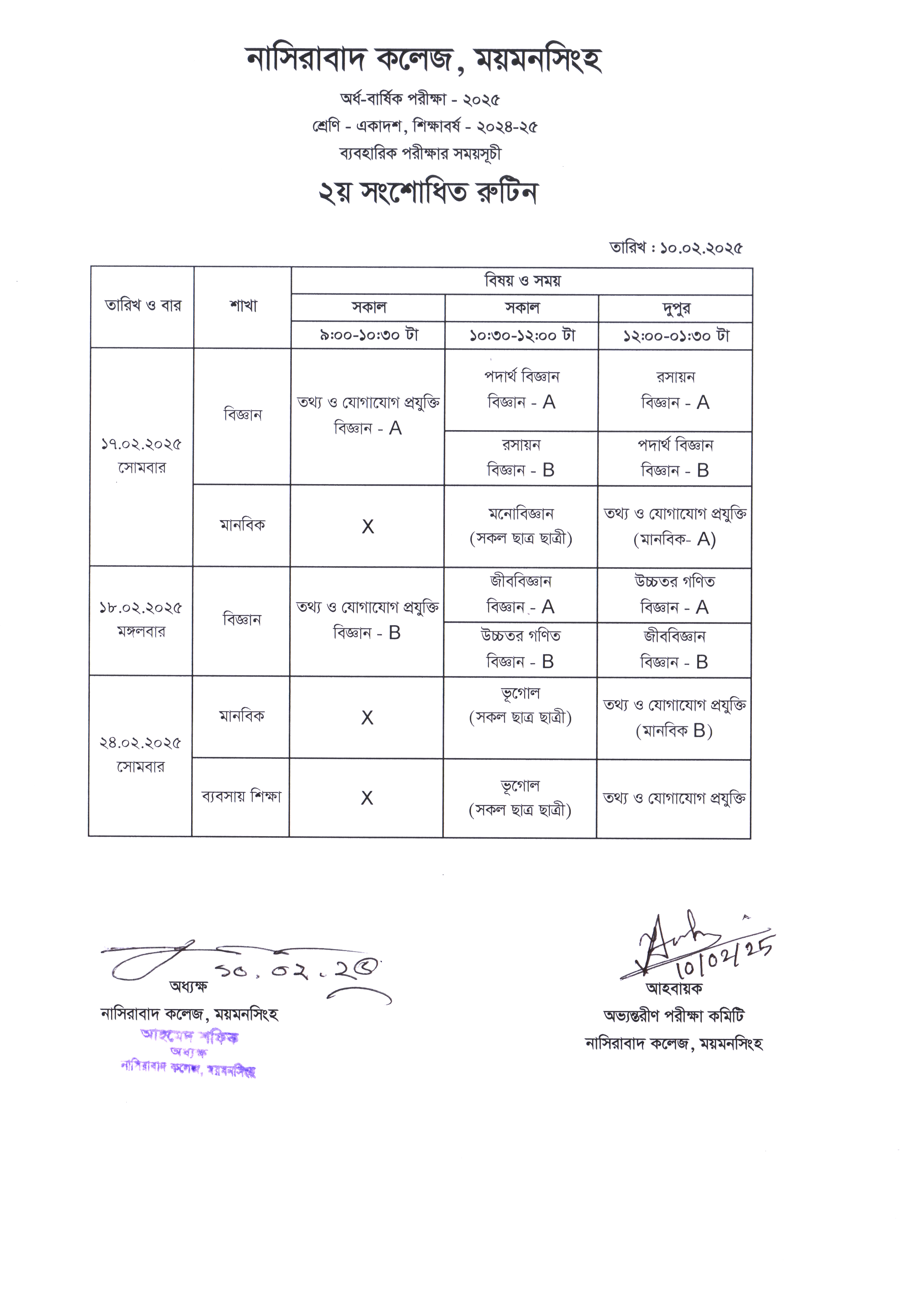 ২০২৩-২৪ শিক্ষাবর্ষের একাদশ শ্রেণির (জানুয়ারি-২০২৪) মাসিক পরীক্ষার রুটিন।