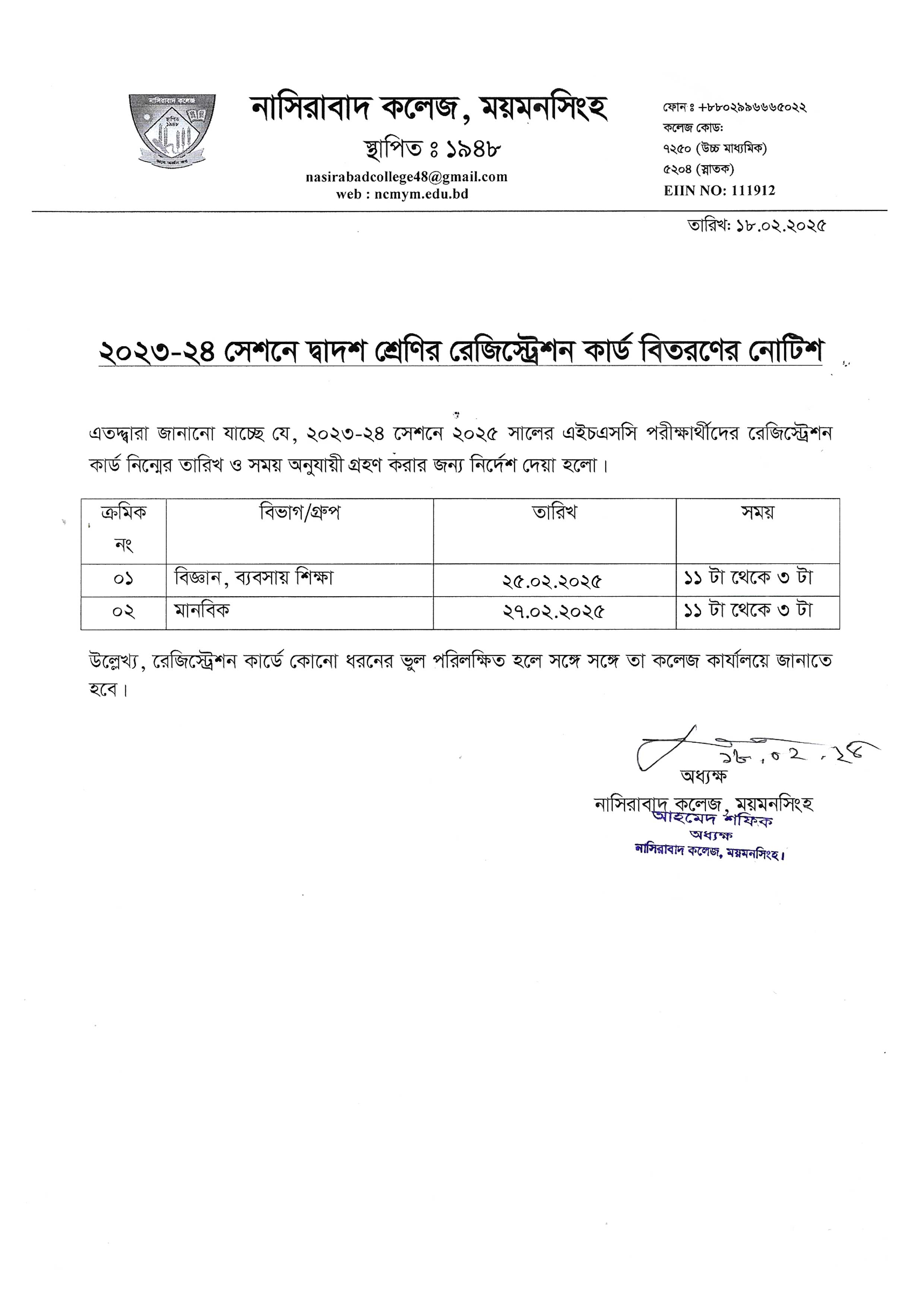 ২০২৫-২৬ সেশনে একাদশ শ্রেণিতে নিশ্চায়কৃত/ভর্তিযোগ্য শিক্ষার্থীদের তালিকা (বিজ্ঞান, মানবিক, ব্যবসায় শিক্ষা)।