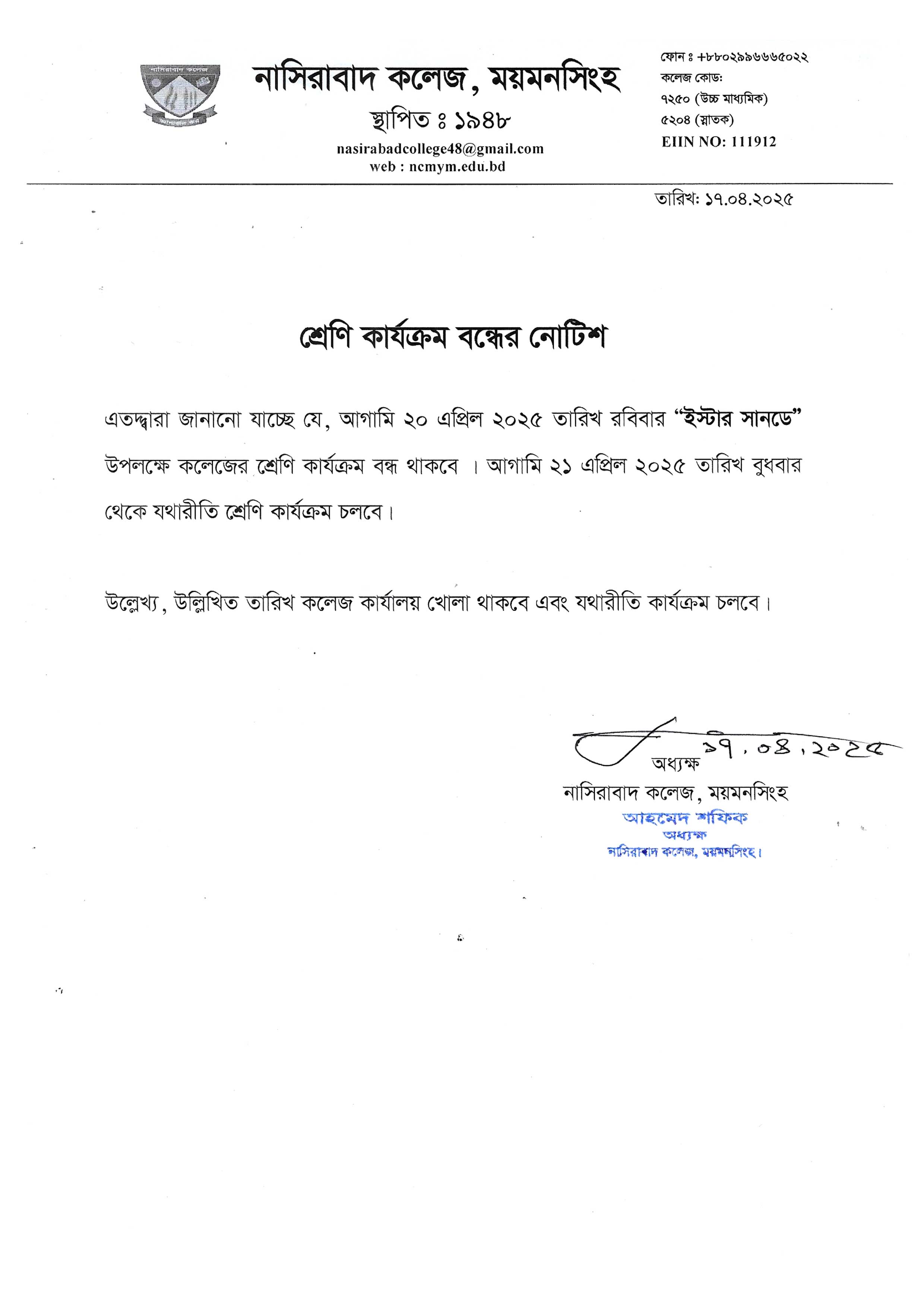 কলেজ কার্যক্রম বন্ধের নোটিশ