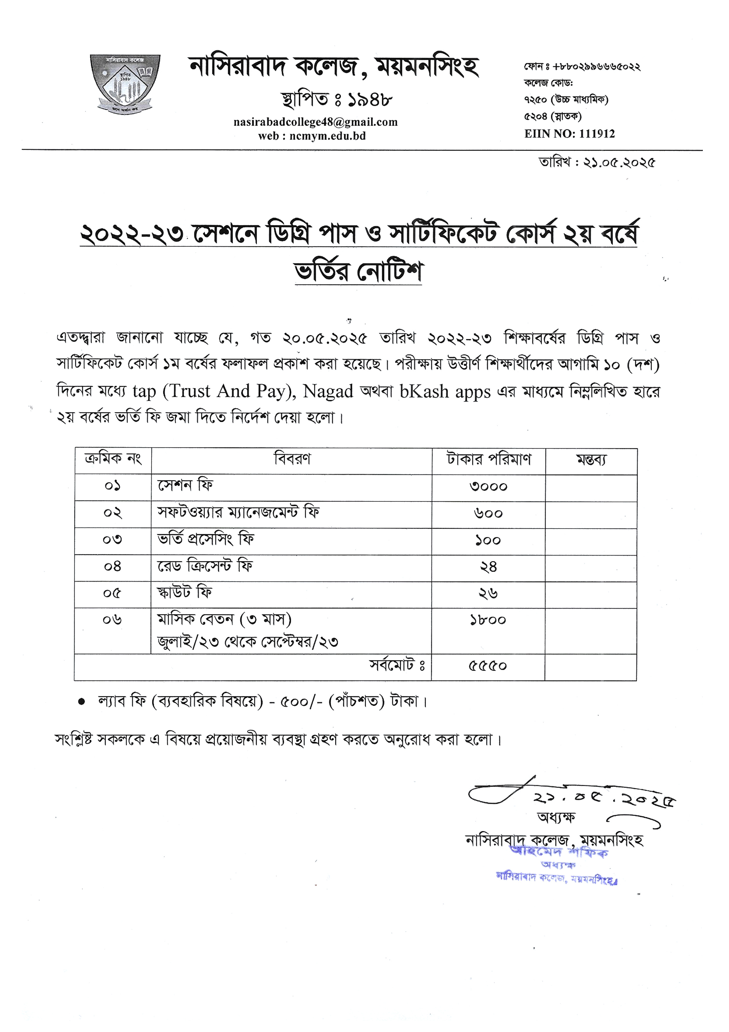 ২০২২-২৩ শিক্ষাবর্ষে ডিগ্রি পাস ২য় বর্ষের বেতনাদি পরিশোধ সংক্রান্ত নির্দেশনা