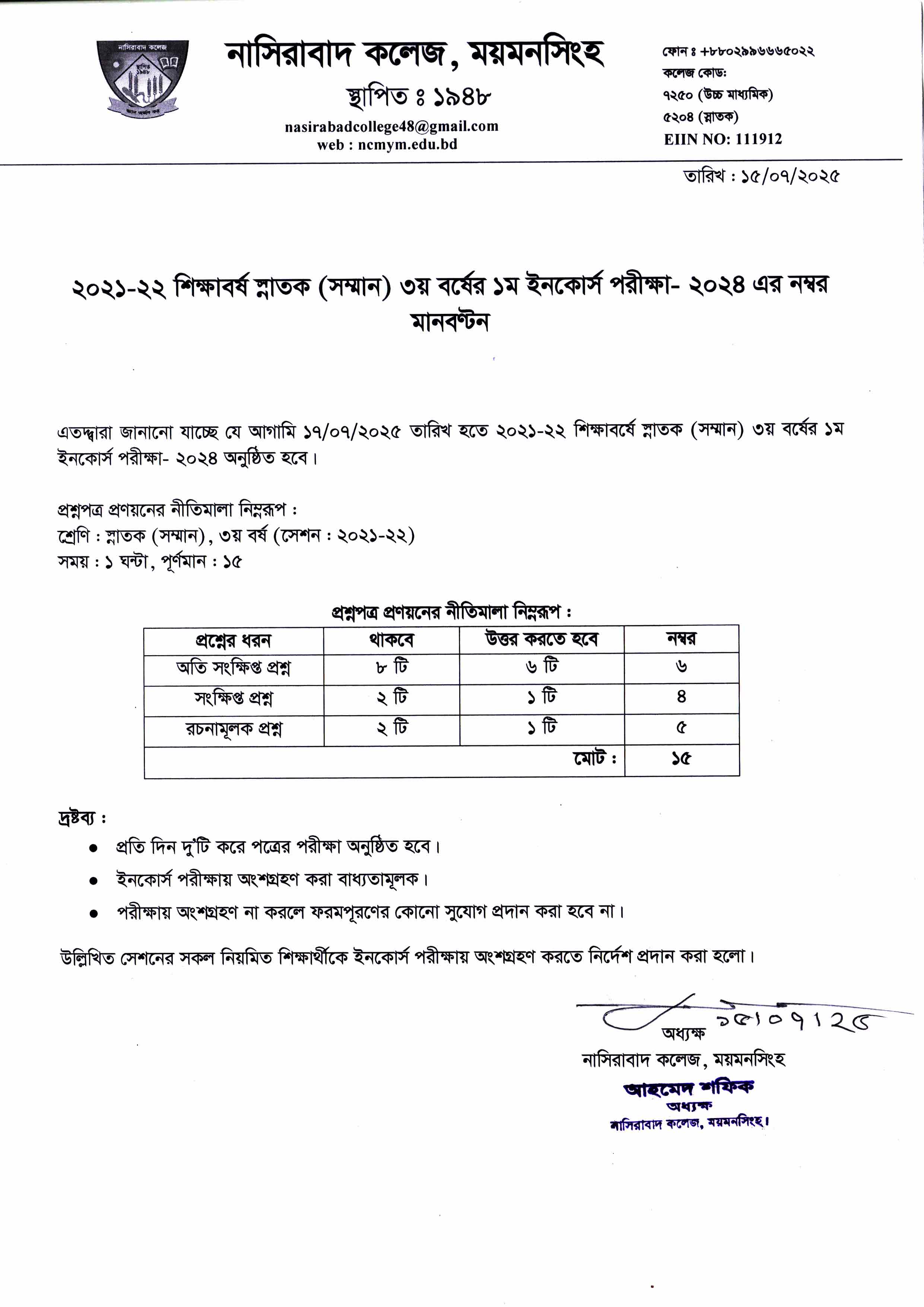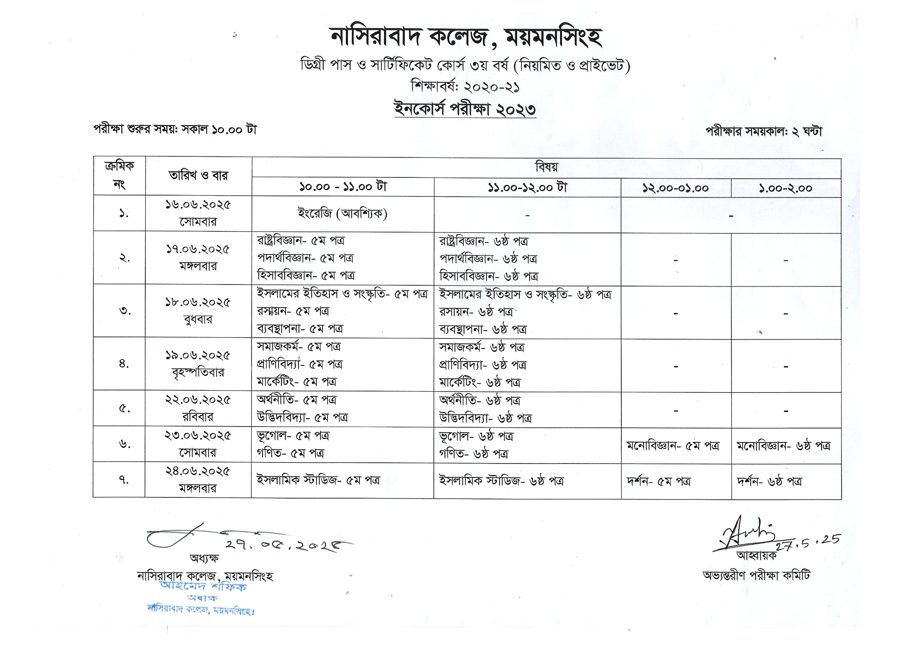 ২০২০-২১ শিক্ষাবর্ষে ডিগ্রী পাস ২য় বর্ষ (নিয়মিত ও প্রাইভেট) ইনকোর্স পরীক্ষা-২০২২ এর সময়সূচী প্রকাশ